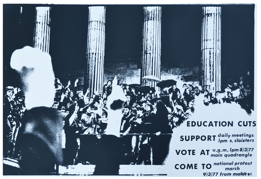 I was a 'member' of the Poster Collective (later renamed The Poster Film Collective) from 1976 to 1979. I was invited to join due to my political work, prints and actions, at the Central School of Art and Design. Worked very hard screen printing many posters; sitting and listening to learned political discourse from Jonathan Miles. Carried out a lot of research and some valuable 'photo-journalism' on the Grunwick Strike. Met and worked with a couple of really committed political artists. At the same time met some arrogant bullies (among them Dave Fox). Some illuminating things coupled with some outstanding pompous bullshit. Did a lot of 'dirty work' for the collective. Juan Muñoz and I printed a number of our posters there.
